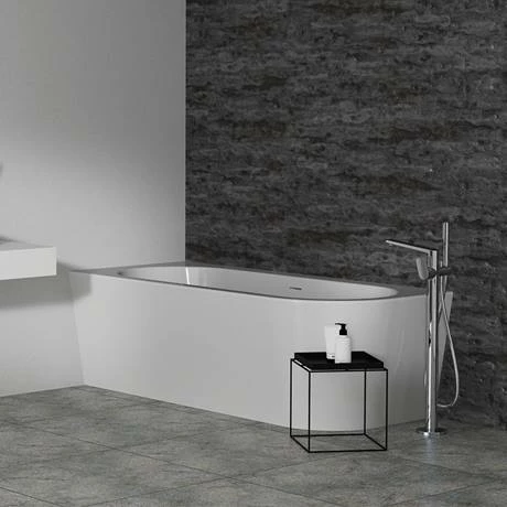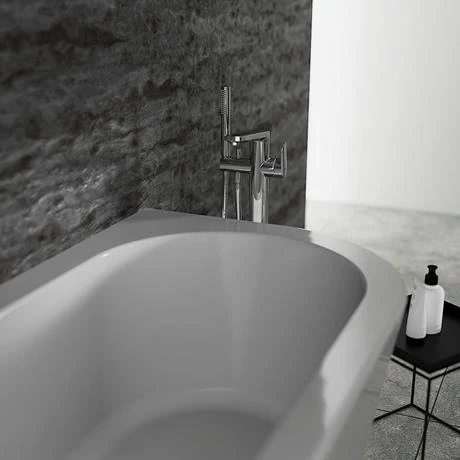 Modern D-shaped luxury bath, the soft curves, geometric oval shape and rimmed edges gives this Adapto bath a stand-out bold look. Made from high-quality white gloss acrylic that holds its warmth, so you can lie back and relax in the bubbles for even longer. Features a sleek slotted overflow and includes a chrome clicker waste.Â
