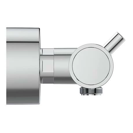 Minimalistic cylindrical design with 2 in 1 pin easy-grip handle and override button. Includes Ideal standard FirmaFlow Therm cartridge for precise temperature control, with adjustable temperature limitstop.