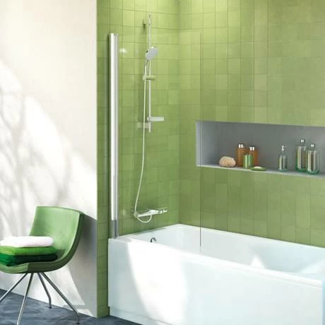 The Ideal Standard Concept Angle Bath Screen features a modern design with bright silver aluminum and Ideal Standards deflector seal for a water tight finish. Made from 5mm toughened safety glass, the screen has up to 20mm adjustment and is fitted with rise and fall hinges.