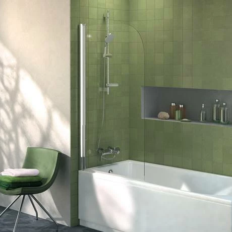 The Ideal Standard Concept Radius Bath Screen features a modern design with bright silver aluminum and Ideal Standards deflector seal for a water tight finish. Made from 5mm toughened safety glass, the screen has up to 20mm adjustment and is fitted with rise and fall hinges.