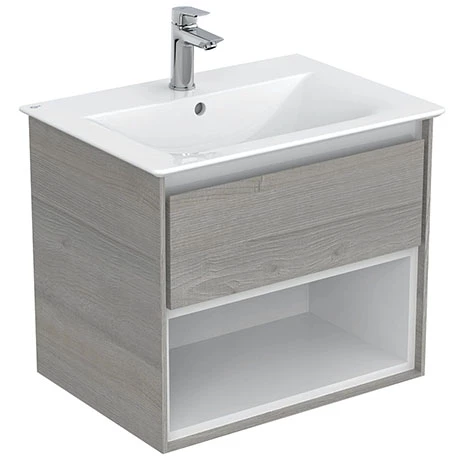 Ideal Standard Connect Air Wood Light Grey 600mm Wall Hung Vanity Unit with Open Shelf