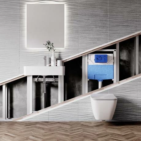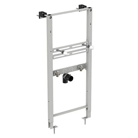The Ideal Standard Prosys washbasin frame is for use with selected wall mounted washbasins using deck mounted taps. It can be installated in front of a solid wall or between two light plasterboard walls. Comprises of basin fixing hardware, frame fastening materials, outlet bend, 2 pcs G ½ fittings for water connection.
