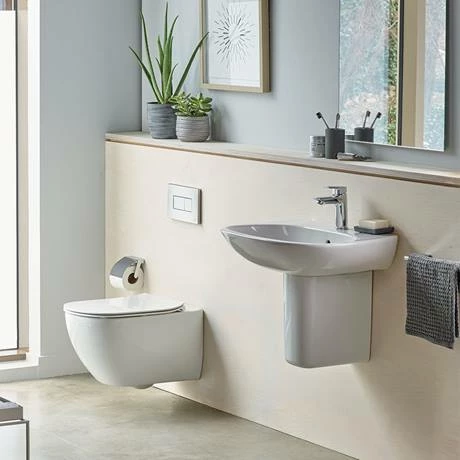 The Tesi range from Ideal Standard combines elegance with functional form, it’s accessible quality and versatility make it easy to assemble a beautifully co-ordinated bathroom. This basin and semi pedestal is manufactured using high quality vitreous china and features a single tap hole and built in overflow. Available in three size options.